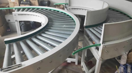 4. “動力滾筒輸送機是滾筒輸送機的重要組成部分。常用于水平或向上微斜的輸送線路。驅動裝置將動力傳遞給滾筒,使其旋轉,并通過滾筒表面與輸送物體表面之間的摩擦力輸送物體。根據驅動方式,有單獨的驅動和組合驅動。前者的每個滾輪都配有單獨的驅動裝置,便于拆卸。后者由幾個滾輪作為一組,由一個驅動裝置驅動,以降低設備成本。組合驅動的傳動方式有齒輪傳動、鏈式傳動和帶式傳動。動力滾筒輸送機一般由交流電機驅動,雙速電機和液壓電機驅動。